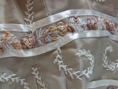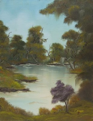Here are a few more of my craft endeavors. The first one is one of about 30 paintings I did back in 2000. It has been a while since I have picked up a brush to paint an oil. The second one is a close up of some ribbon embroidery I thought myself to do for my wedding gown. My mother made the gown I embroidered it.
