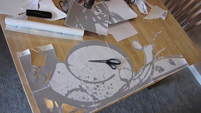 After the mask was in place I created the 3D templates. Using foam core board I cut out the leaves and flowers that printed with the images. (pic above)
