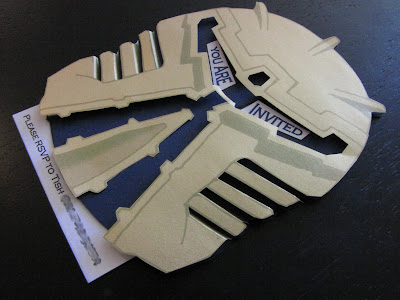These are layered with navy and gold paper. I used the computer to print the text and design. Cut it all out… folded it and layered. The text info pulls out of the bottom of the card. Notice the gold is raised and the mask vents on the side are folded down to give it a 3-D look. Here are some picks for you to check out…
