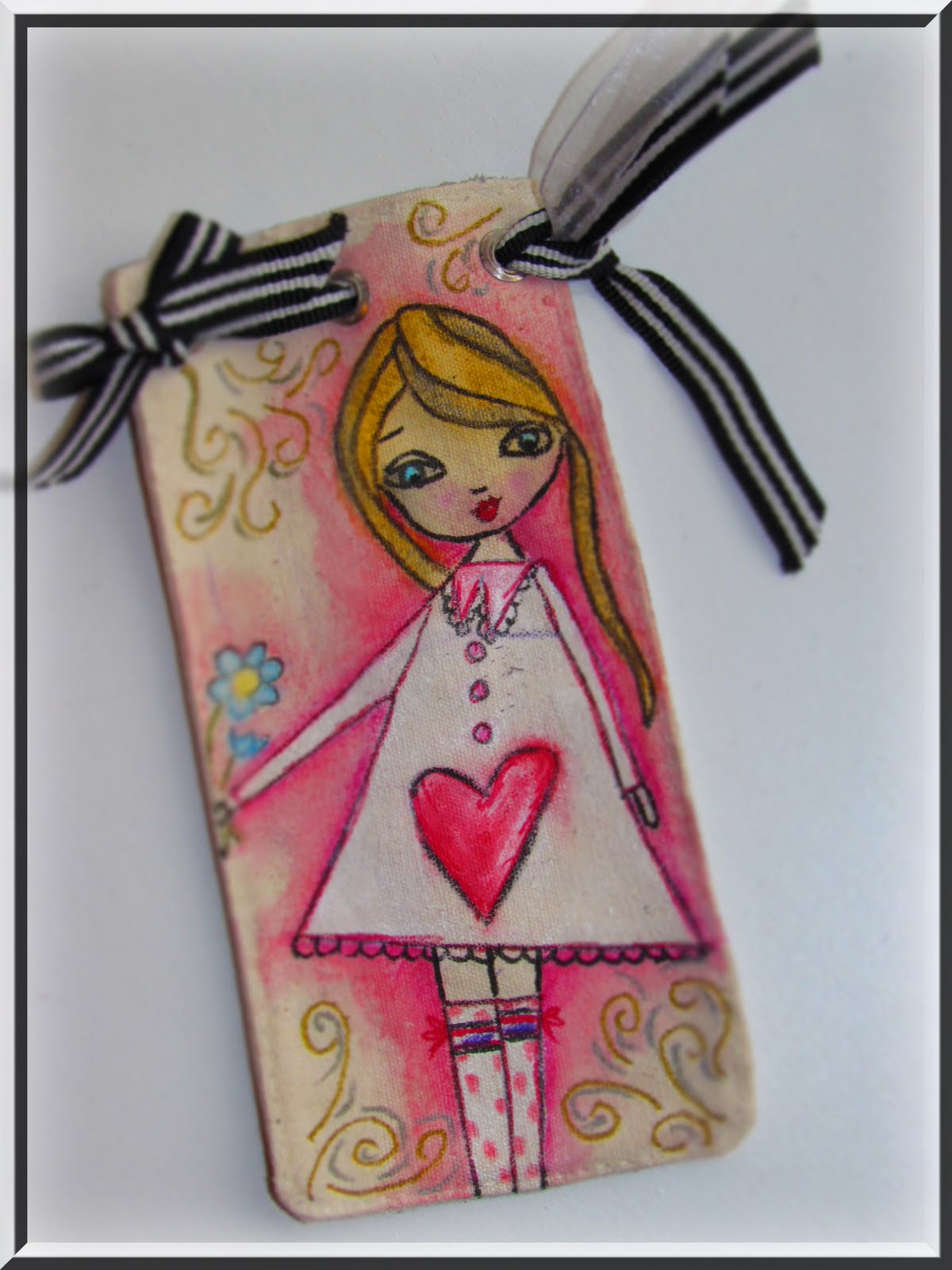 I was able to make the Charity Wings Make and take sponsored by Faber-Castell. It was made from a canvas tag, water color crayons and pencils and their India ink markers.